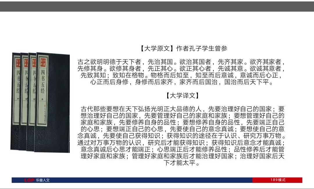 189模式强调的是学习正心,孔子学生曾参在《大学》里说:古之欲明明德于天下者,先治其国。欲治其国者,先治其家。欲齐其家者,先修其身。欲修其身者,先正其心.......