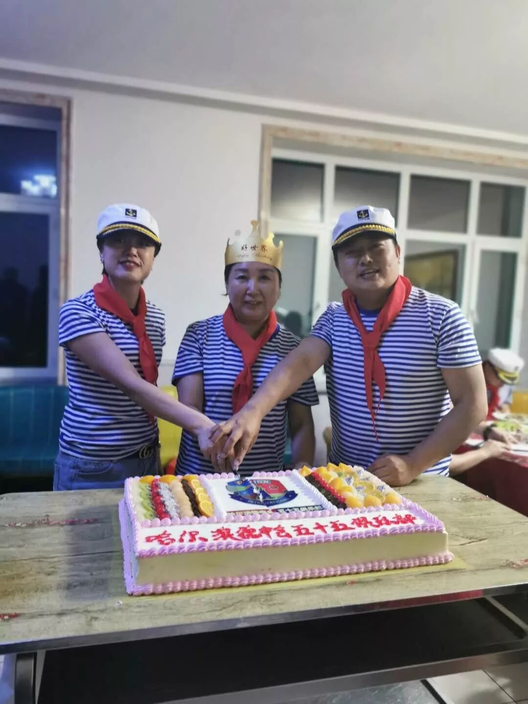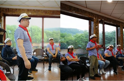下午两点,石琢会长带领的登顶小分队也赶回车内,家人们基本都是浇了一个透心凉,但这丝毫不影响我们气势高昂的脚步,我们在车内换好会长团队为大家精心准备的海军装,继续前行。大约两点半的时候大家到达了晚上下榻的地方丽水庄园,这里风光秀丽,依山傍水,为我们扫去了登山的狼狈与疲倦,大家开始出游第一餐。饭后大家找了一个风景独好的地方开始拍照留念,家人们再一次喊出第五十五俱乐部口号,“爱伴温暖前行,高随深度逐梦”响彻在山间。